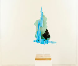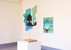 I tillegg til maleri på lerret består utstillingen av det kunstneren selv beskriver som collageobjekter – billedelementer satt sammen til tredimensjonal form. Verkene befinner seg dermed i skjæringspunktet mellom maleri og installasjon, mellom todimensjonal og tredimensjonal form.